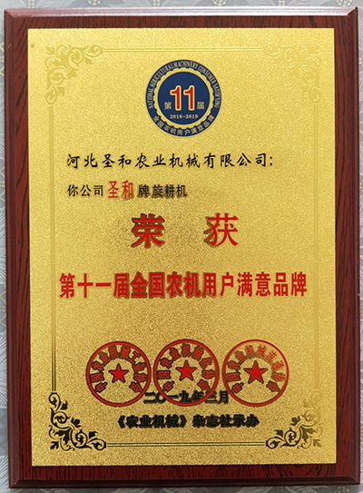 圣和旋耕機榮獲第十一屆滿意品牌證書獎牌