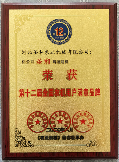 圣和旋耕機(jī)榮獲第十二屆滿(mǎn)意品牌獎(jiǎng)牌