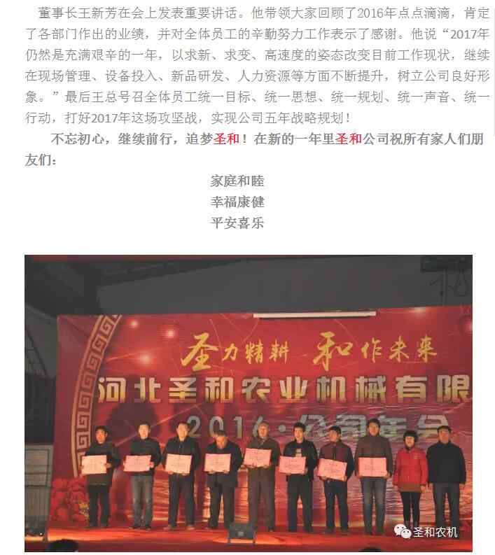圣和農(nóng)機(jī)2017年度表彰暨新春聯(lián)誼晚會(huì)