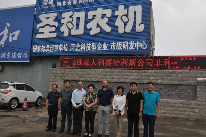 2017年6月13日,天空時不時下著小雨,在這小麥?zhǔn)崭畹霓r(nóng)忙時節(jié),來自意大利賽特利斯公司菲利普先生及鐘振修先生到圣和公司參觀洽談,受到圣和公司董事長王新芳及總經(jīng)理師西峰熱情接待,并全程陪同詳細介紹了圣和公司企業(yè)發(fā)展及產(chǎn)品制作流程。菲利普先生剛進圣和就被圣和公司的企業(yè)文化深深吸引,在文化墻上仔細聽取鐘先生的翻譯,用我們聽不懂的意大利語表達并連連點頭,隨后董事長王新芳講解了企業(yè)文化的內(nèi)涵、組織架構(gòu)和未來的規(guī)劃生產(chǎn)流程和銷售網(wǎng)絡(luò)等等,做了簡單的講解,菲利浦先生認真聽取也對圣和有了初步的了解,并對王總的發(fā)展經(jīng)營理念表示贊同,隨后參觀了公司展廳對產(chǎn)品的技術(shù)問題進行了相關(guān)討論,并對公司的熱銷產(chǎn)品和設(shè)計給予了高度評價和贊嘆!王總非常愉快的與飛利浦先生共進午餐,飛利浦先生也對圣和公司的熱情好客表示非常的滿意,他表示從企業(yè)文化就能看出圣和公司是一個特別有責(zé)任感和使命感的年輕企業(yè),愿與此深入了解和合作,建立友誼與互信,并高興地在公司門前合影留念。