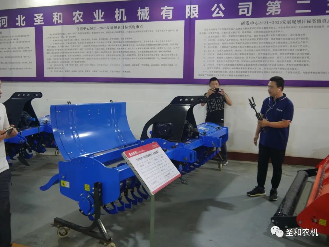 河北圣和農業機械有限公司東北大區總經理曹彥濤,在圣和展廳以實際產品為例,具體介紹旋耕機、秸稈還田機、深松機、動力驅動耙、埋茬起漿機、清壟智能免耕施肥精密播種機等農機產品。