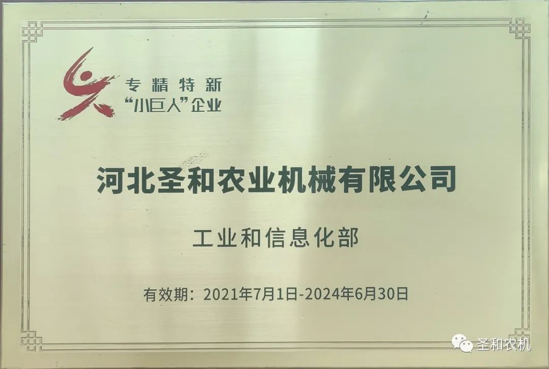 ●2022年,河北省工業(yè)和信息化廳,公布了河北省首批縣域特色產(chǎn)業(yè)集群“領(lǐng)跑者”企業(yè)名單,河北圣和農(nóng)業(yè)機(jī)械有限公司入選。